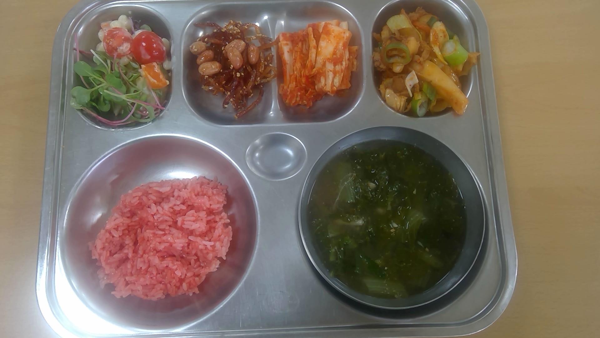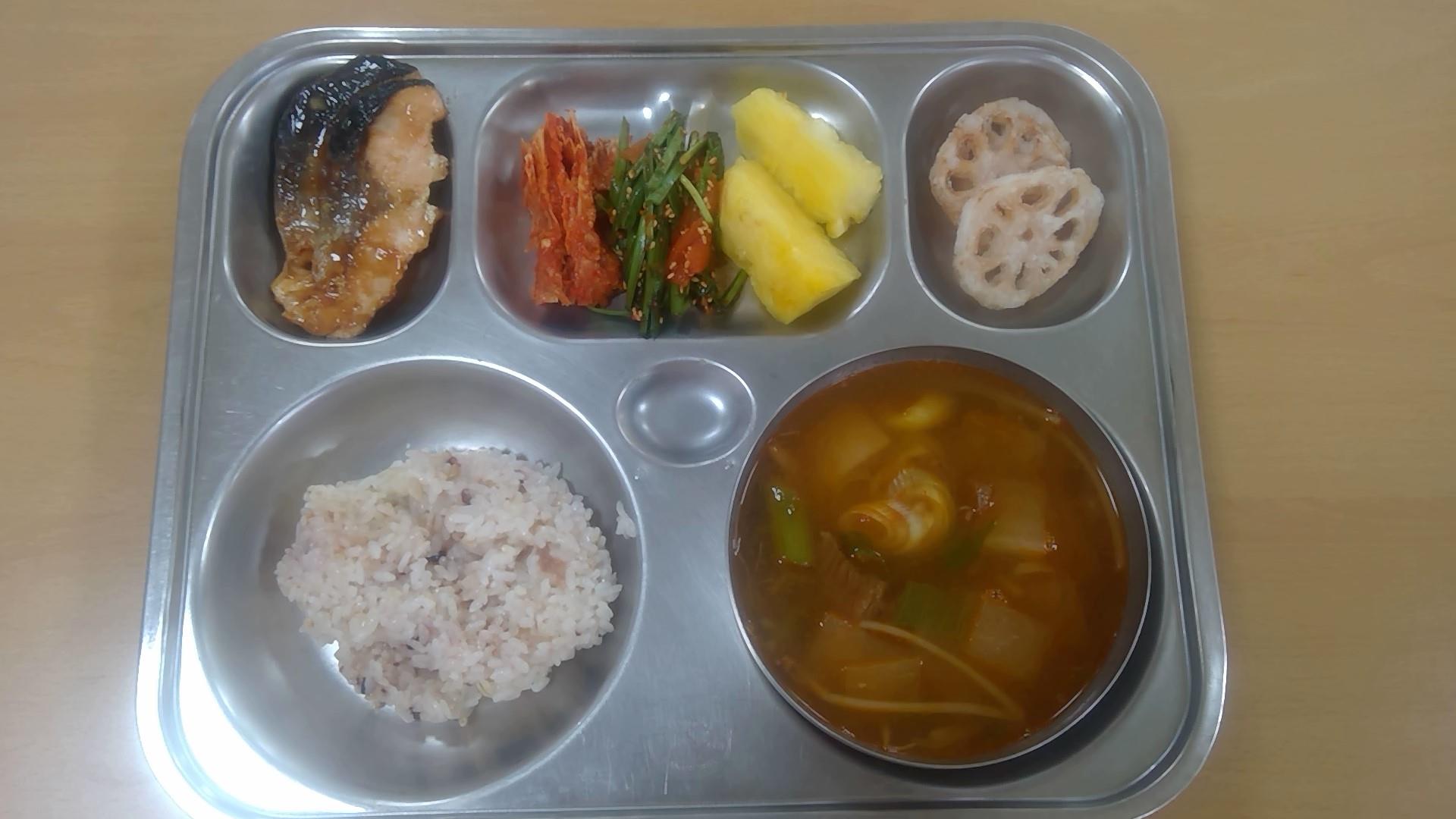 ㆍ혼합잡곡밥(5) ㆍ쇠고기무국(5.6.16) ㆍ부추겉절이(5.6.13) ㆍ연근칩튀김(5) ㆍ고등어포구이(5.7) ㆍ배추김치(9) ㆍ우유(2) | ㆍ혼합잡곡밥(5) ㆍ냉이단배추국(5.6.18) ㆍ쥐어채땅콩조림(4.5.6.13) ㆍ콘샐러드(1.2.5.6.12) ㆍ오삼불고기(5.6.10.13.17) ㆍ배추김치(9) ㆍ우유(2) | ㆍ김치야채볶음밥(5.6.9.13.16.18) ㆍ북어포무채국(5.6) ㆍ겨울초겉절이(13) ㆍ닭살고구마강정.(5.6.12.13.15) ㆍ깍두기(9) ㆍ우유(2) | ㆍ혼합잡곡밥(5) ㆍ조갯살쑥국.(5.6.18) ㆍ돌나물두부샐러드(5.6.13) ㆍ멸치잔파무침(5.6.13) ㆍ수제함박스테이크(1.2.5.6.10.12.13.16.18) ㆍ배추김치(9) ㆍ우유(2) |