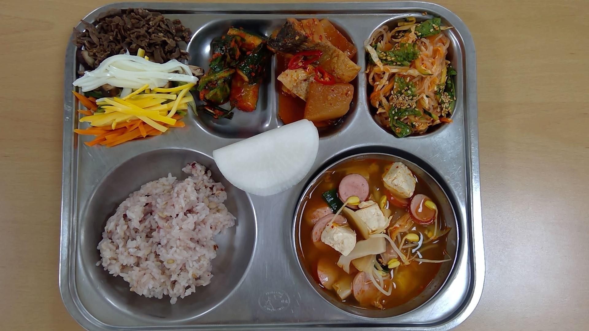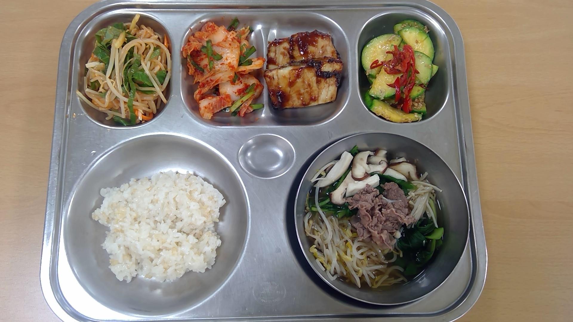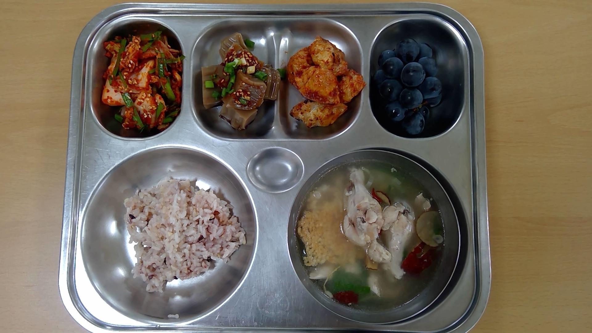 ㆍ누룽지닭봉백숙(15) ㆍ혼합잡곡밥 ㆍ배추겉절이(13) ㆍ칠리만두(1.5.6.10.13.16.18) ㆍ우유(2) ㆍ포도 ㆍ도토리묵(5.6) | ㆍ발아현미밥 ㆍ쇠고기샤브샤브.(5.6.16) ㆍ쫄면콩나물무침(5.6.13) ㆍ호박새우젓볶음(5.9) ㆍ임연수어데리야끼소스구이(5.6.13) ㆍ배추김치(9) | ㆍ전복곤드레나물밥(5.6.18) ㆍ순두부맑은국(1.5) ㆍ모듬채소겉절이(5.6.13) ㆍ돼지불고기(2.5.6.10.13) ㆍ배추김치(9) ㆍ우유(2) ㆍ요구르트(2) | ㆍ혼합잡곡밥(5) ㆍ햄모듬찌개.(1.2.5.6.9.10.15.16) ㆍ코다리순살조림(5.6.13) ㆍ오절판(1.5.6.16) ㆍ실곤약야채무침(5.6.13) ㆍ오이김치(9) ㆍ우유(2) | ㆍ잔치국수.(5.6) ㆍ닭꼬지구이(5.6.12.13.15) ㆍ배추김치(9) ㆍ우유(2) ㆍ자두쥬스 |