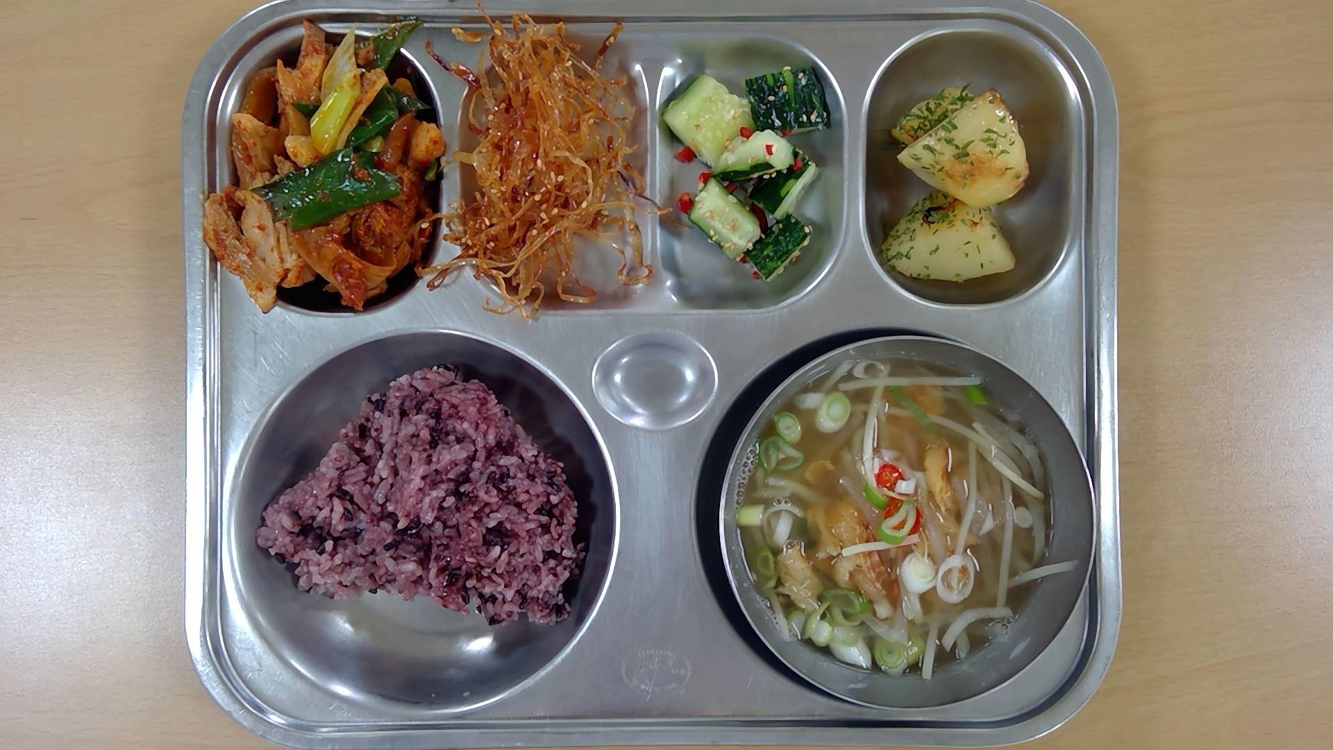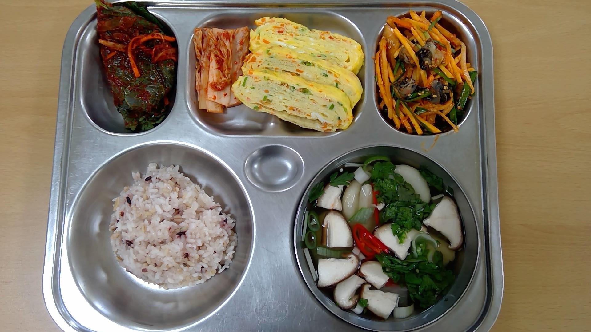 ㆍ혼합잡곡밥(5) ㆍ모듬어묵국.(1.5.6) ㆍ우렁살고구마무침(5.6.13) ㆍ깻잎지(5.6.13) ㆍ계란말이(1.5) ㆍ배추김치(9) ㆍ우유(2) | ㆍ찰보리밥 ㆍ단배추국(5.6) ㆍ유럽채소샐러드(오리엔탈소스)(5.6.12.13) ㆍ겨울초된장무침(5.6) ㆍ수제김치함박스테이크(1.2.5.6.9.10.12.13.16.18) ㆍ배추김치(9) ㆍ우유(2) | ㆍ잡채밥/자장소스.(1.5.6.8.9.10.13.16.17.18) ㆍ미소된장국(5.6) ㆍ(꽈리고추찜)(5.6.13) ㆍ땅콩꽃빵튀김(4.5.6.13) ㆍ배추김치(9) ㆍ대추방울토마토(12) ㆍ우유(2) | ㆍ흑미밥 ㆍ북어포무채국(5.6) ㆍ돈육김치찜(5.6.9.10.13) ㆍ오징어실채볶음(5.13.17) ㆍ오이송송이무침(13) ㆍ감자버터구이(2.5.6.13) ㆍ우유(2) | ㆍ잔치국수.(5.6) ㆍ구운계란(1) ㆍ배추김치(9) ㆍ오렌지 ㆍ우유(2) |